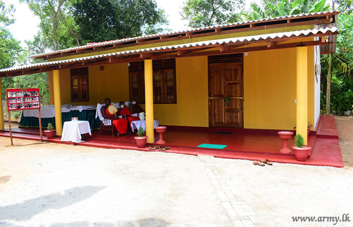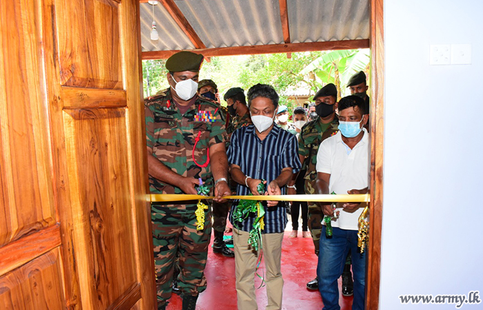 Giving more teeth to the Army's ongoing house construction for the homeless, 11 (Volunteer) Sri Lanka Sinha Regiment (SLSR) troops under the 23 Division of the Security Force Headquarters - East (SFHQ-E) completed the construction of one more house for a differently able retired War Hero of the 8 Vijayabahu Infantry Regiment in Bakkiella, Vellaweli area.