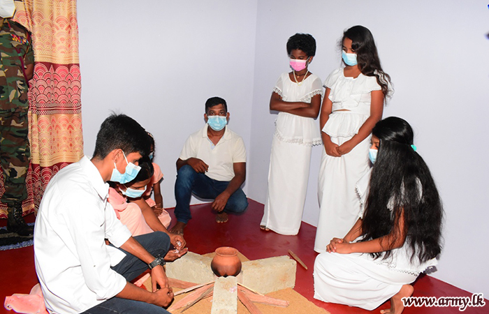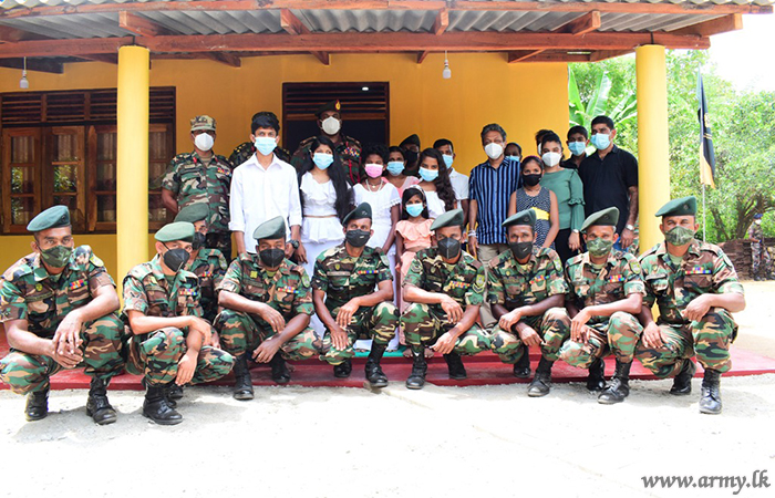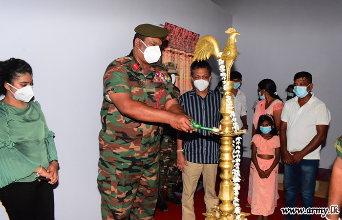 The newly-built house was warmed in a simple ceremony on Tuesday (12) where the Commander Security Forces - East, Major General Channa Weerasuriya as the Chief Guest cut a ribbon and handed over the keys of the new house to the family.