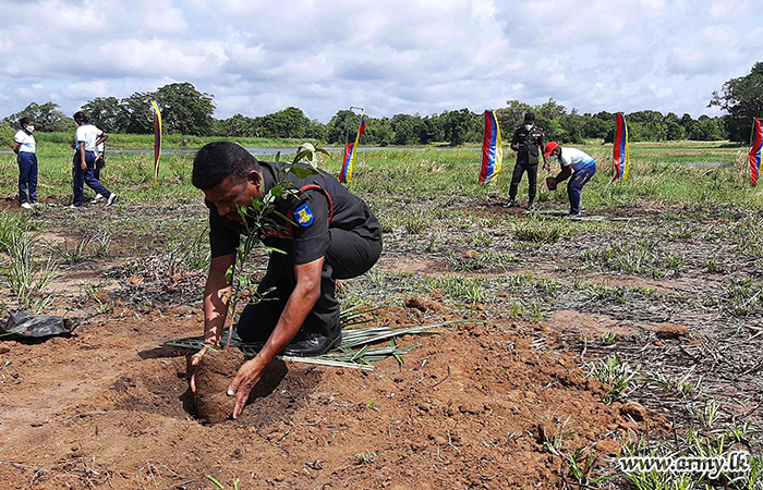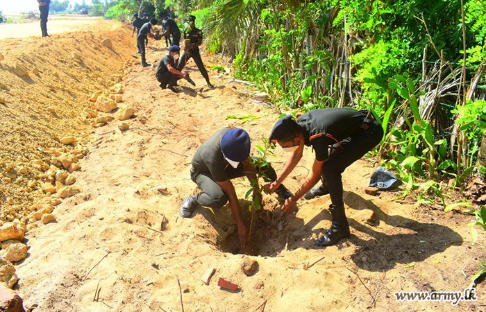 To be in line with the island-wide campaign to plant 10,000 'Kumbuk’ saplings on account of the 72nd Army Anniversary, East-based troops of the Security Force Headquarters – East on Sunday (10) planted 1600 'Kumbuk' saplings inside the SFHQ-E compound on the instructions of Major General Channa Weerasuriya, Commander, Security Forces – East.