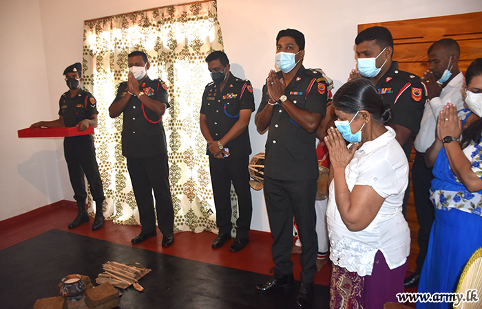 Accordingly, the newly-repaired house was formally warmed in the presence of Mrs Mangala Kumari, the beneficiary by Brigade Commander of 112 Brigade, Brigadier Anura Disanayake on the Army Day (10 October 2021).