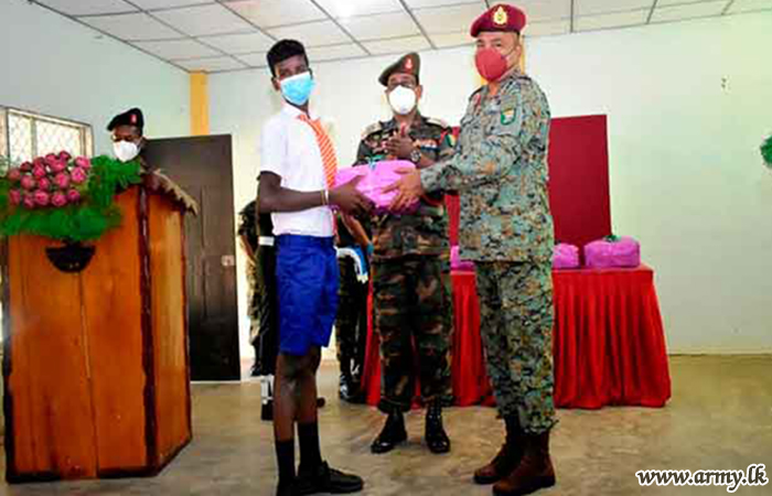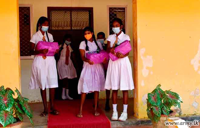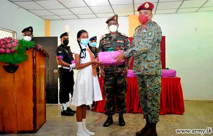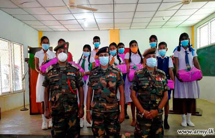 Troops of the 10 Sri Lanka Light Infantry (SLLI) in Vavuniya gave away parcels of stationery to school children in 652 Brigade area on Monday (18).