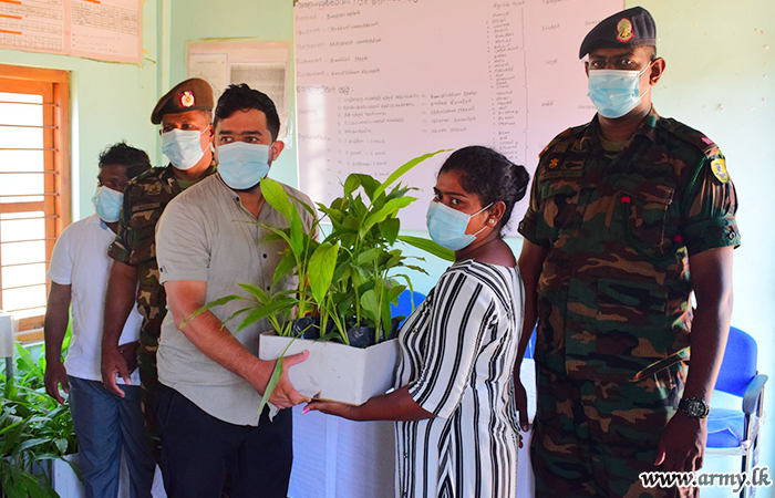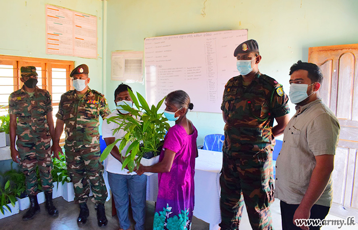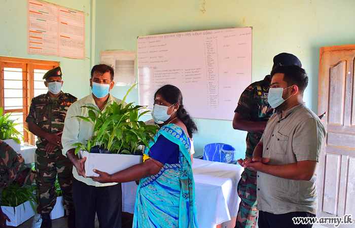 Troops of the 4 Gemunu Watch (GW) under the guidance of the Commander, 231 Brigade, Brigadier W.M.N.K.D Bandara launched a programme to distribute 600 turmeric plants among 30 needy families in the general area of Thirayamadu, Batticaloa district on Tuesday (19).