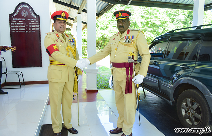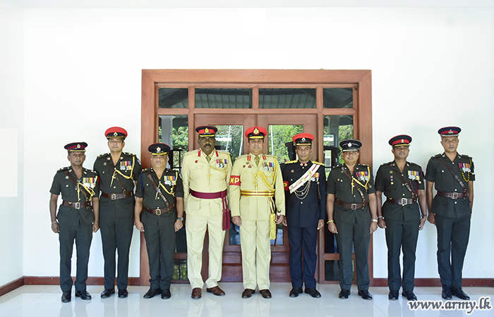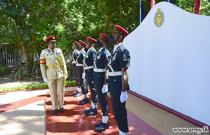 Troops of the Sri Lanka Corps of Military Police (SLCMP) presented a Guard Turnout at the entrance saluted him before a separate Guard of Honour afterwards honoured him as a formality.