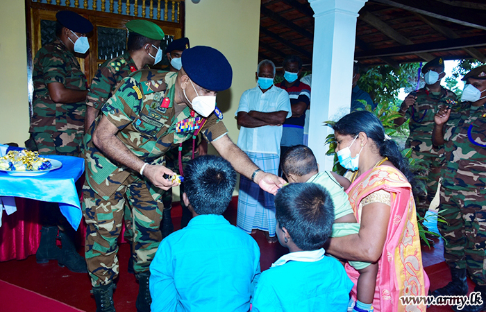 Senior army officers, Other Ranks, Grama Seva official, Development officer of the area and relatives of the beneficiary participated in the simple house- warming event.