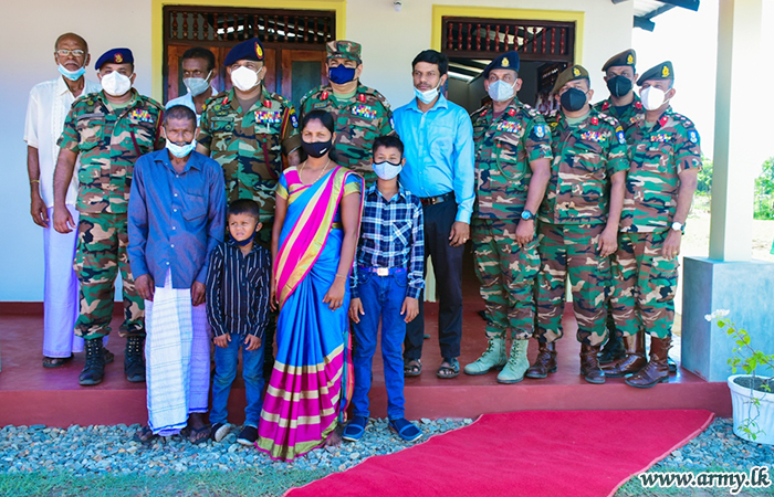 To coincide with the 72nd Anniversary of the Sri Lanka Army, a newly - constructed house was vested in the needy family of Mr Ragan Thambirasa, Sugandipuram on Wednesday (13) during a simple ceremony, attended by Major General Sisira Pilapitiya, Commander SFHQ -MLT.