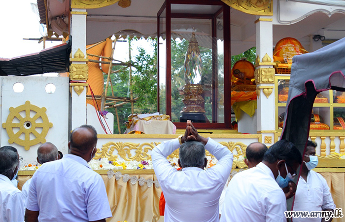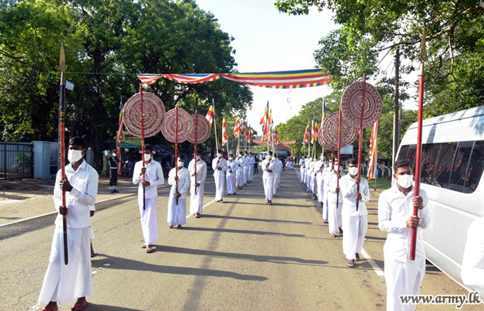Accordingly, the religious procession reached Deegawapi Raja Maha Viharaya, Mahawapi Viharaya, Bollegama Raja Maha Viharaya, Dimbulagala Monastery, Somawathiya Raja Maha Viharaya, Buddhist Centre Medirigiriya, Velunna Raja MahaViharaya, Seruwawila Raja Maha Viharaya, Sri Jayasumanarama Maha Viharaya Trincomalee and finally, to the Welgamvehera Raja Maha Viharaya spending over 08 days around the Security Force (East) area.