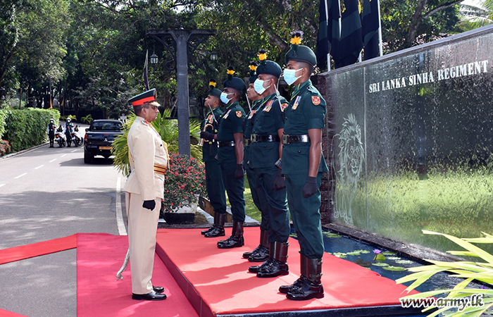 The newly-promoted senior officer was warmly welcomed by the Centre Commandant - SLSR, Brigadier M.G.W Wimalasena on behalf of the Colonel of the Regiment SLSR on arrival after a Guard Turnout greeted him.