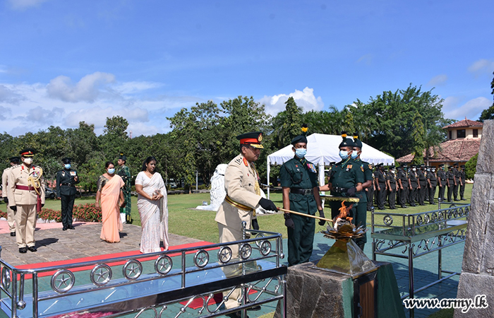A subsequent Guard of Honour saluted the day's Chief Guest at the parade ground before he was invited to plant a sapling in the compound after floral tributes to fallen SLSR War Heroes were made at the SLSR Regimental Monument.
