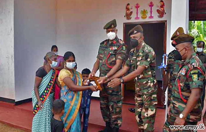 To coincide with the 72nd Army Anniversary, Brigadier Wasantha Bandara, 651 Brigade Commander handed over the keys to the new house during a simple ceremony that followed Hindu religious traditions.