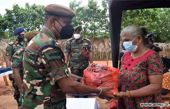 Mrs Muththu Kumar Yaseeda, a widow leading a hand to mouth life with her daughter was without a proper house when her miserable plight was brought to the notice of 651 Brigade Commander who afterwards took up the challenge of building of new house in consultation with Major General Anil Samarasiri, GOC, 65 Division.