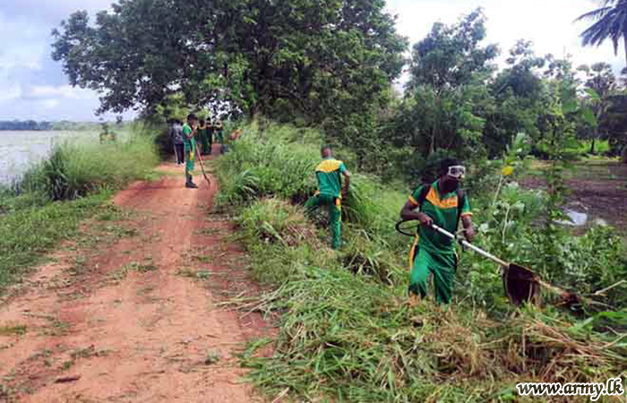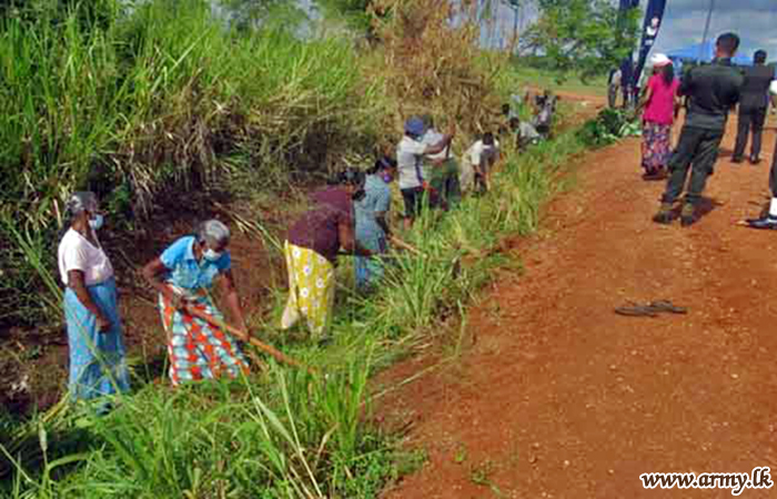 The programme started after blessings of the Chief Incumbent of Monarawewa Sri Mayurivapi Viharaya, together with troops from 14 (V) SLLI, members from ‘Eksath Bedumela Sri Hasthi’ Farmers’ Society - Ethawetunawewa. The canal provides water for 206 acres of paddy fields and, facilitates 206 farming families during the Maha season.