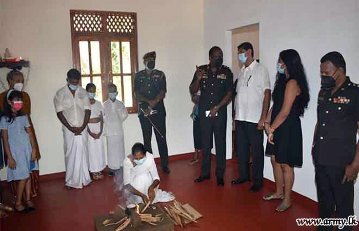 To coincide with the 72nd Army Anniversary, 212 Brigade troops of the 21 Division through the coordination of Brigadier Anil Peiris who was formally serving the Security Force Headquarters - Wanni, currently Commander Armour Brigade, warmed two new houses and delivered keys to the beneficiaries on 11 October 2021 during separate simple ceremonies.