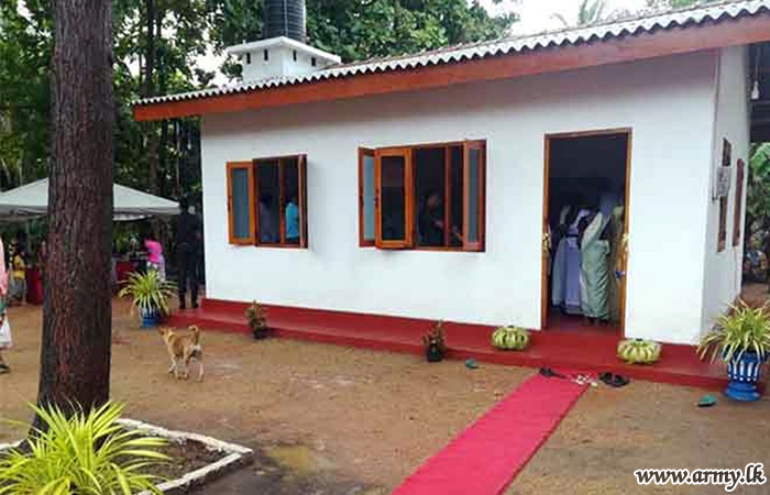 Under the guidance of the GOC 21 Division, Major General Mohan Rathnayaka and the supervision of the Commander, 212 Brigade, Brigadier R.P.A.R.P Rajapaksha those two houses were separately constructed by 7 (V) Sri Lanka Armoured Corps and 5 (V) Sri Lanka National Guard troops.