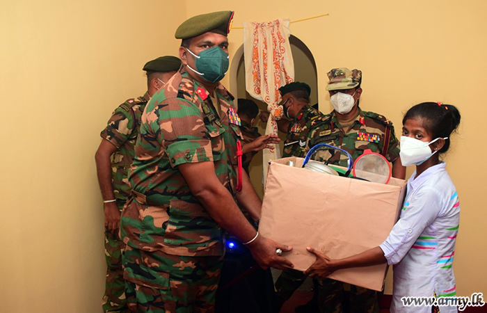 The beneficiary, Mrs P.G Rohini Kumari Wickramapala of Maharathmale, Minneriya was leading a hand to mouth life when her situation was brought to the notice of the Commander, Security Forces - East, Major General Channa Weerasuriya.
