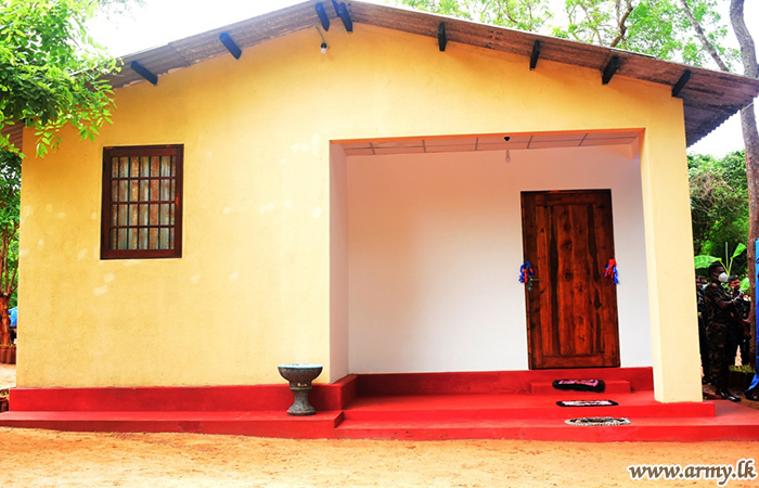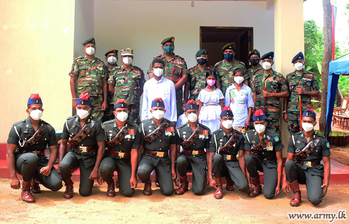 The construction of the new house was completed by 7 SLA troops well ahead of the deadline under the close supervision of the 7 SLA, Commanding Officer, Lieutenant Colonel Chandana Harischandra. Funds for raw materials and other metal needs were donated by donors in the area, thanks to the initiatives taken by the Security Force Headquarters - East.