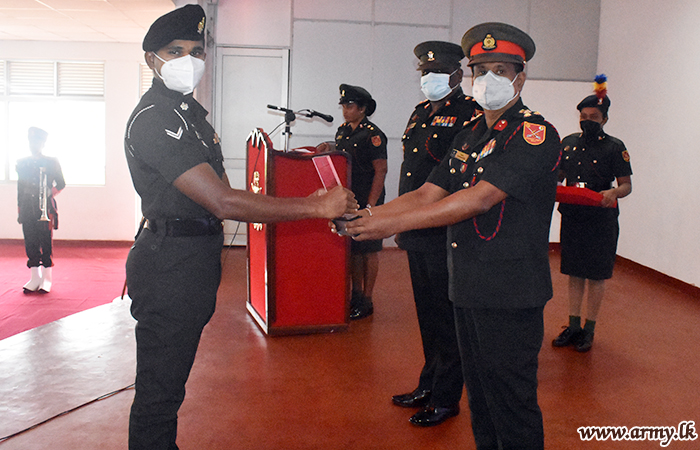 Staff Sergeant J.A.K Priyadarshana of 2 SLAOC was awarded as the Best Student of the Regimental Quartermaster Course No - 67 and the Corporal G.I.R.K Gamage of 1 Reconnaissance Regiment Sri Lanka Armoured Corps was awarded as the Best Student in the Storeman/Ammo Storeman Course No-49.