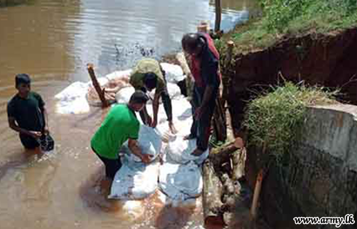 In addition, 6 Vijayabahu Infantry Regiment troops of the Brigade are currently stacking sand bags to prevent further breach of the left bank of the Deduru Oya near the 30th Mile Post.