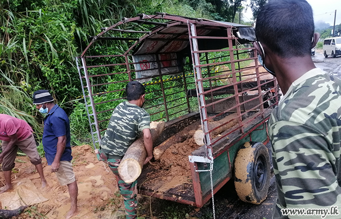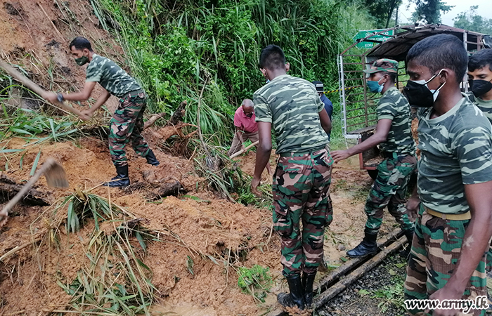 Earlier, at Dombemada, Rambukkana, troops rescued and evacuated a family buried alive early this morning (9). (See separate story)