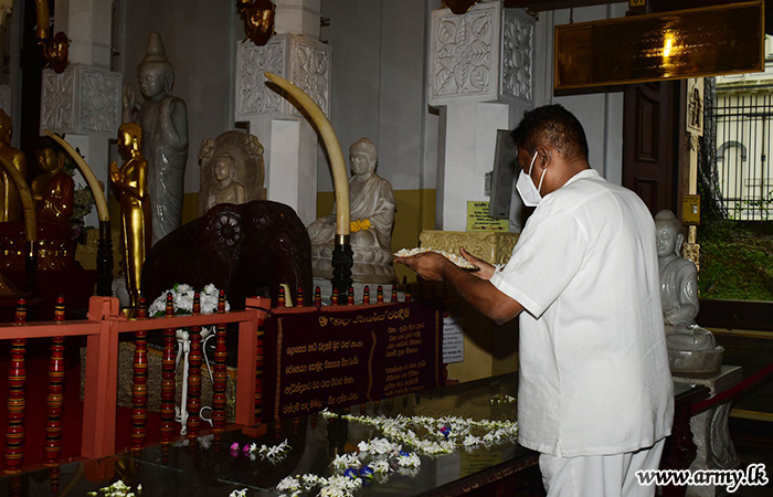 Again on 9 November 2021, troops of the 1 Corps, along with Major General Harendra Ranasinghe carried its flag for invocation of blessings at Kandy Sri Dalada Maligawa.