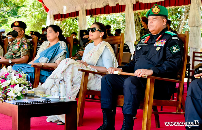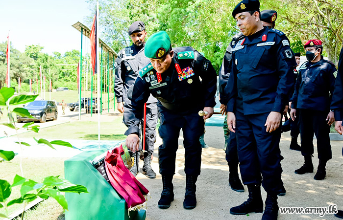 Unveiling a plaque, the Chief Guest vested this newly-constructed SFTS' outdoor training area with the SFTS. The new simulated area, well-structured with obstacles enables SF trainees to undergo gruelling endurance capacities for enhancement of their energy, strength, agility, mobility, flexibility, etc which in turn help groom the SF soldier to meet with modern-day challenges and other vulnerabilities.