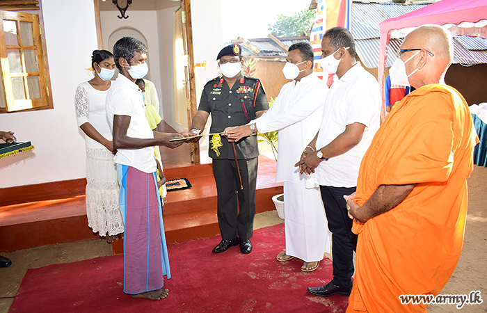 Major General Prasanna Ranawaka, General Officer Commanding, 12 Division attended the warming ceremony and delivered the keys to the new house, adhering to health guidelines.