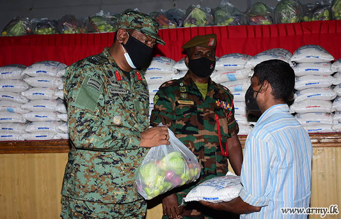 Major General Harendra Ranasinghe, Commander, 1 Corps as the Chief Guest distributed those relief packets, consisted of rise, dhal, chilies, milk powders, spices and other essentials, thanks to the sponsorship, made by Mr Senaka Seneviratne residing in the US after a request to this was extended by the Commander 1 Corps.