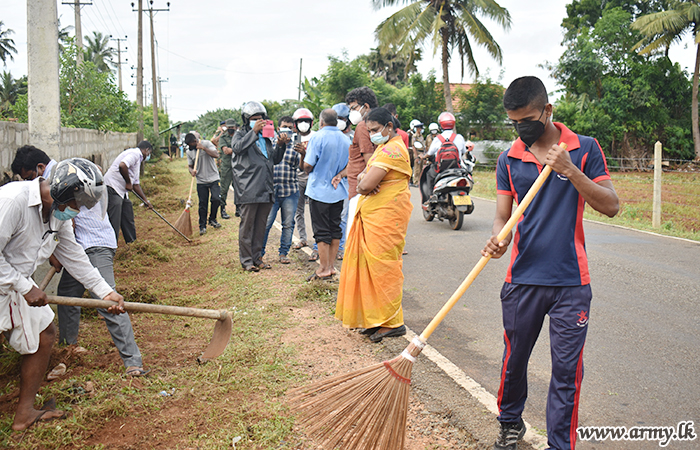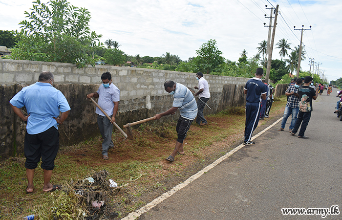 Troops of the 51 Division HQ as per directions given by the SFHQ-J launched a ‘Shramadana’ to rid Dengue breeding mosquitos in the genera areas of Selvapuram and Kopai villages on Tuesday (23) after health authorities warned the people of an outbreak of a Dengue epidemic after a torrential rains.