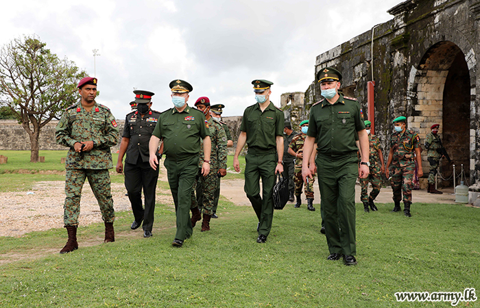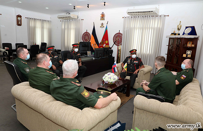 The Chief of Engineering Troops of the Russian Armed Forces Lieutenant General Yuri Mikhailovich Stavitsky and his delegation in order to observe de-mining operations in the North arrived in the Jaffna peninsula on Tuesday (23) and called at the Security Force Headquarters - Jaffna to meet the Commander, Security Forces – Jaffna, Major General JagathKodithuwakku.