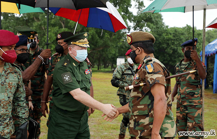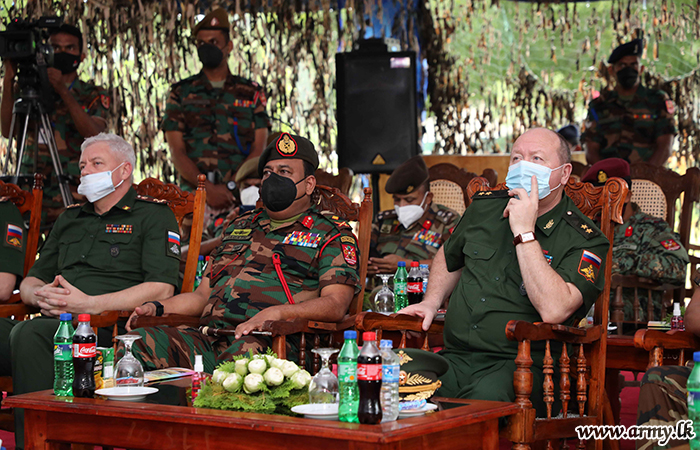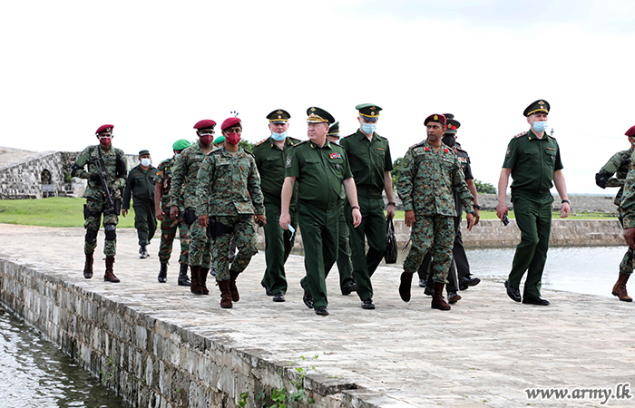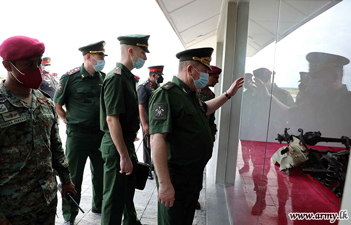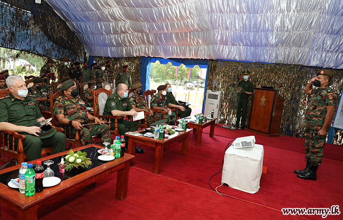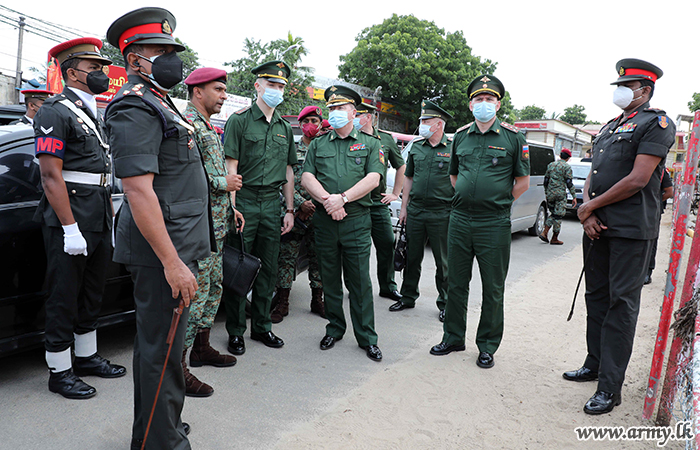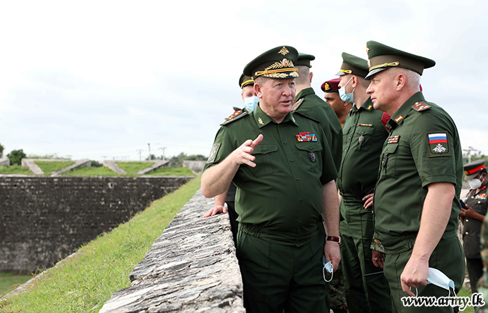 The delegation, composed of Colonel Alexander ViktorovichSkvortsov, Officer of the Directorate of the Chief of Engineering Troops of the Armed Forces of the Russian Federation, Colonel Andrei Vladimirovich Romanchuck, Brigade Commander Pontoon Brigade, Colonel Igor IvanovichPavelko - Chief of the Engineering Troops Training Centre before moving to the de-mining sites, received a comprehensive brief from Major General JagathKoddithuwakku.