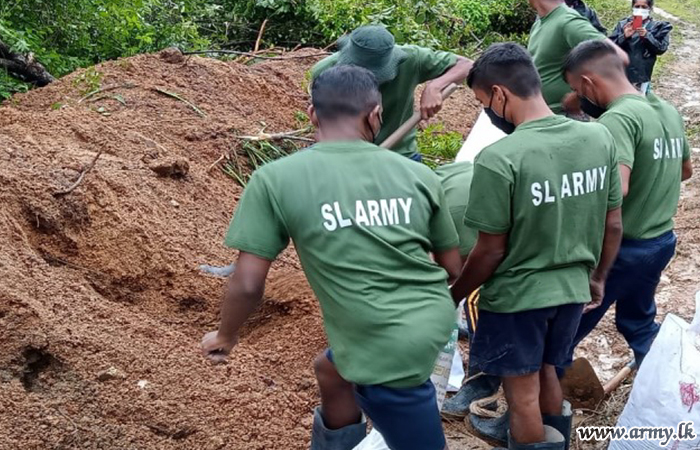 A length of about 10 m of the tank bund due to recent torrential rains was badly affected causing a water leakage when the Army troops were alerted to the imminent danger of a major disaster if the leakage turned worse.