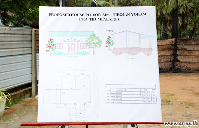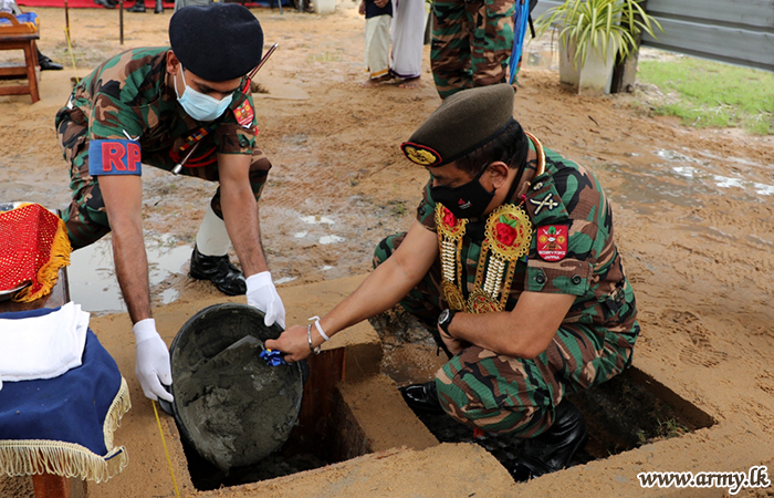 During separate foundation-stone laying ceremonies organized by 55 Division troops, Major General Jagath Kodithuwakku, Commander, Security Forces - Jaffna laid the cornerstones for construction of those two houses to members of the ex-combatant families of Mrs Tharsan Yogeshwari and Mrs Nirojan Yogam respectively.