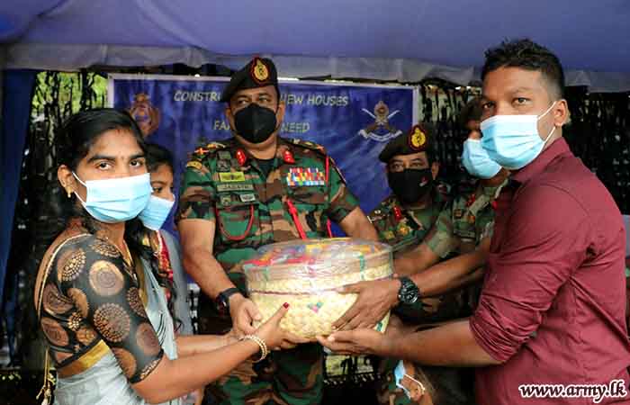 The Security Force HQ - Jaffna since few years following instructions of the Commander of the Army has been at the forefront of constructing houses for former LTTE combatants or their widowed families. The brief ceremony followed health guidelines as per instructions.