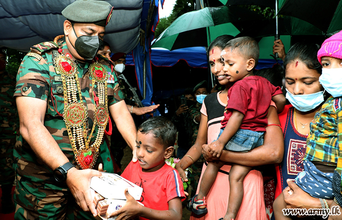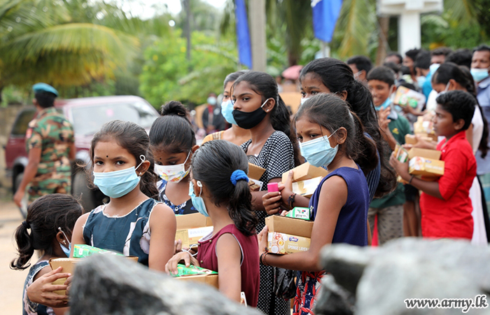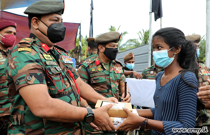 After the brief foundation-laying ceremonies, the Commander Security Forces - Jaffna donated dry ration packs and stationeries to children of those families, in addition to a similar stock of dry ration packets that were distributed among who participated in the inaugural events.