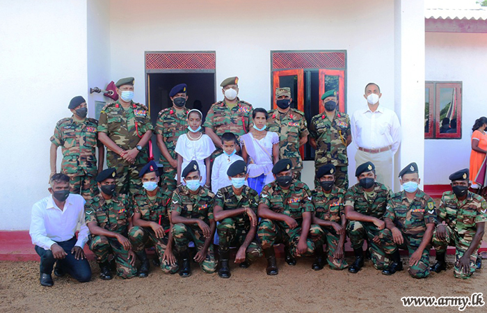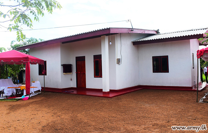 6 Sri Lanka Armoured Corps (SLAC) troops of the 223 Brigade under the 22 Division of the Security Force Headquarters - East with financial assistance donated by the Sri Lankan expatriate in Australia Mr Nihal Udugamasuriya, erected a new house for a needy family in Mailawewa in Thusithapura and handed over the keys to the beneficiary on Sunday (28).