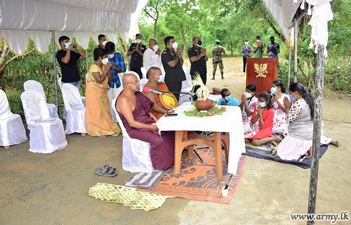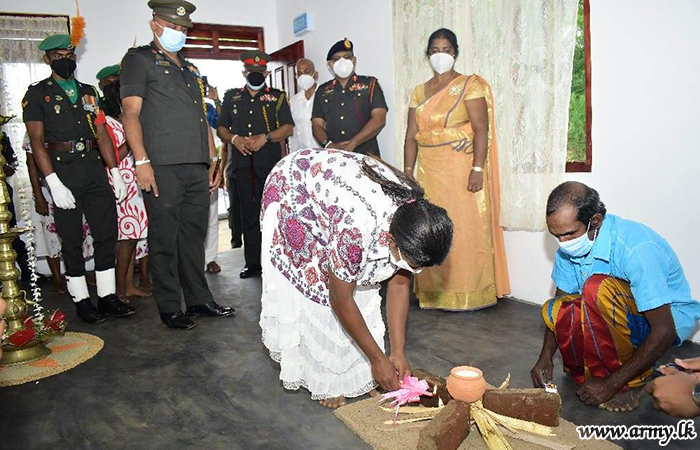 On Sunday (28), the Army-built new house was vested in the beneficiary during a simple ceremony, headed by Major General Prasanna Ranawaka, the donor Mr D Amarathunga, several representative donors and Army personnel after observing house-warming formalities and traditions.