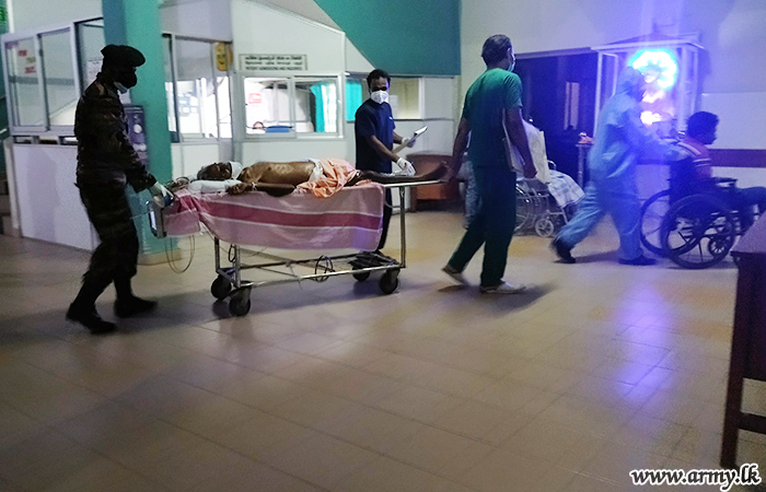 At the request of Director of the District Hospital in Monaragala Dr. R.M.D Ratnayake, the Commander of the 12 Division instructed the 121 Brigade Commander Brigadier D.U.N Serasinghe to direct 121 Brigade troops to help maintenance of skeletal services of the Moneragala District Hospital due to a sudden trade union action.