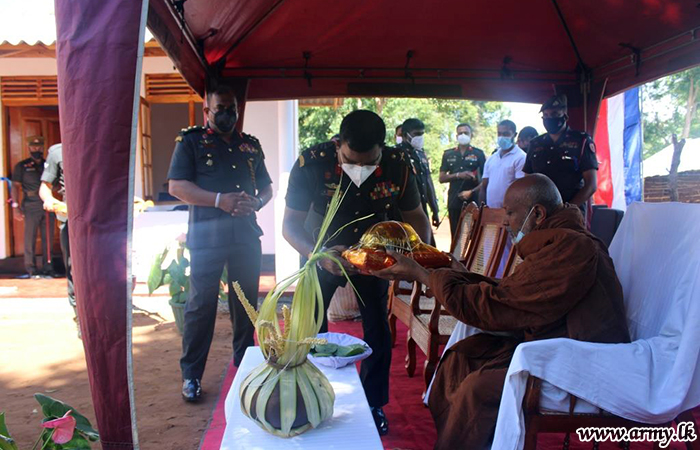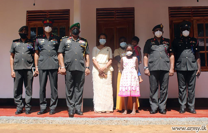 On Tuesday (30) November, the Army-built new house was vested in the beneficiary during a simple ceremony, headed by Major General Prasanna Ranawaka, several representatives of the donors and Army personnel after observing house-warming formalities and traditions.