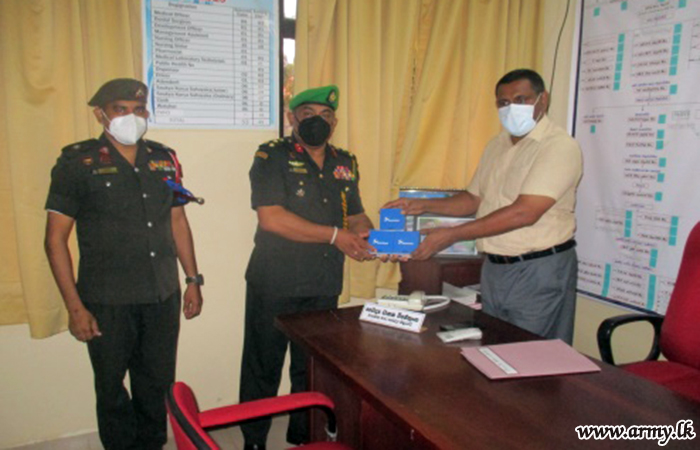 Troops of the 12 Division under command to the Security Forces - Central recently took steps to distribute a stock of oximeters that had been gifted to the Army Commander among the Divisional Hospital at Ambalanthota, Ayurvedic Hospital Beliatta, Divisional Hospital Kirinda, Divisional Hospital Lunugamwehera, Base Hospital Tissamaharama, Divisional Hospital Kataragama, Divisional Hospital Beliatta, Divisional Hospital Walasmulla, MOH Office Hambantota and the MOH office Lunugamwehera.