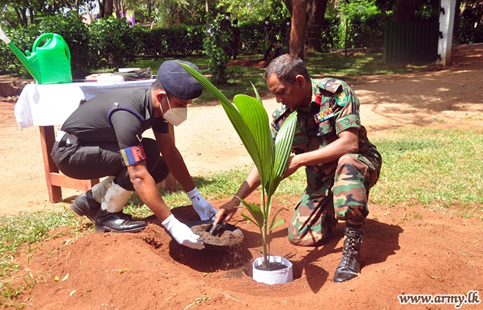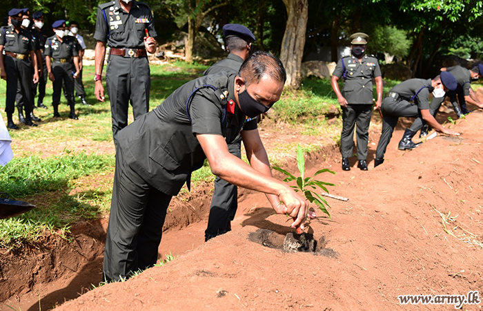 The Engineer Services Trade School (ESTS) in Galayaya in order to support the green concept, 'Thuru Mithuru Nawa Ratak' of the Commander of the Army on Tuesday (30) planted 250 saplings of Kumbuk, Mee, and Coconuts inside ESTS compound in collaboration with the Coconut Cultivation Board and the Mahaweli Authority.