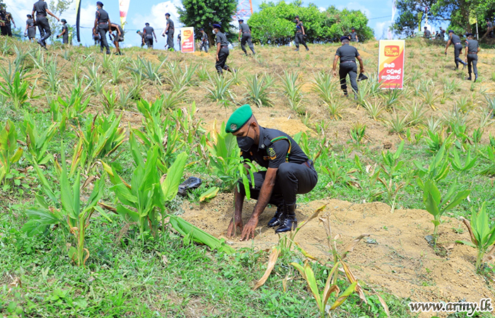 In line with the 'Thuru Mithuru-Nawa Ratak' project of the Chief of Defence Staff and Commander of the Army General Shavendra Silva, troops of the Sri Lanka Army Volunteer Force (SLAVF) at Kosgama launched a mammoth tree planting and sapling distribution programme at the SLAVF Headquarters premises under the guidance of the SLAVF Commandant, Major General Vikum Liyanage on Friday (3).
