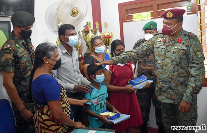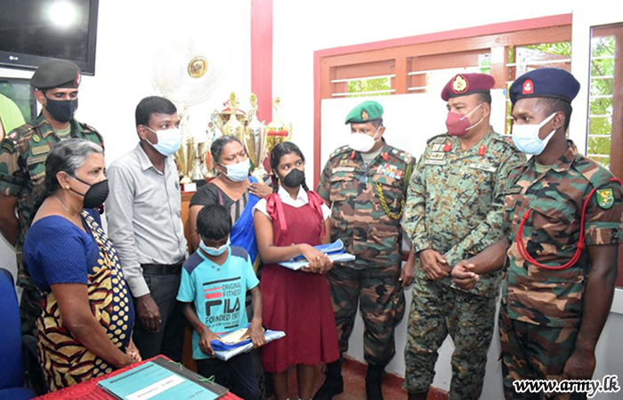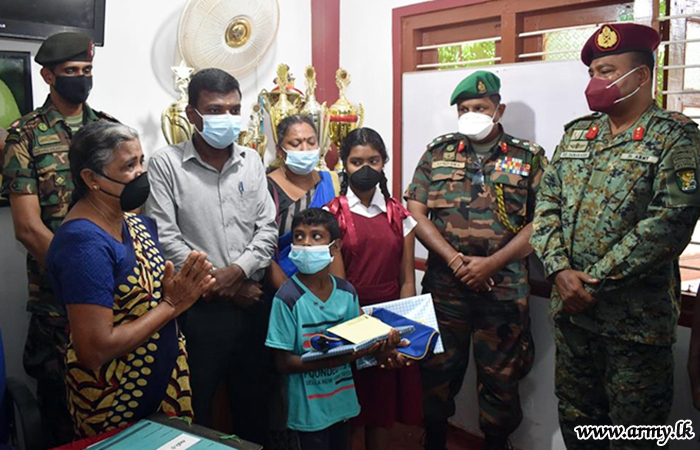 At the request of the General Officer Commanding (GOC), 65 Division, Major General Anil Samarasiri, two orphaned students, sister and brother of the same family, living in Palinagar, Vavunikulam under economic hardships were offered two scholarships for their higher studies.