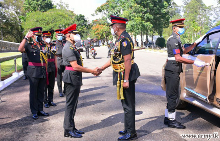 After a warm welcome, extended by the SLMA Commandant, Brigadier Nalinda Niyangoda along with several senior officers of the SLMA, he proceeded to the SLMA's 'Monument of Peace' in the compound and saluted the memories of fallen War Heroes placing a floral wreath.
