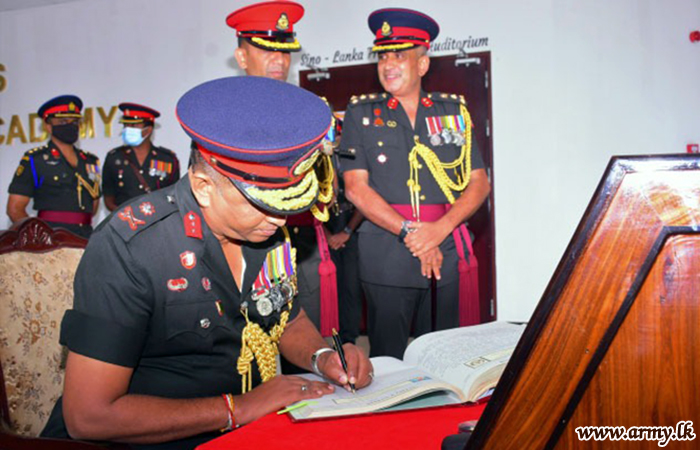 Afterwards, he visited the Cadets’ Mess and the Ella Museum where his Intake photograph remained hung before he had a field visit to glance at ongoing constructions inside the premises. Before his exit, the SLMA Commandant presented a memento to him and invited him to pen a few of his thoughts in the Visitors' book.