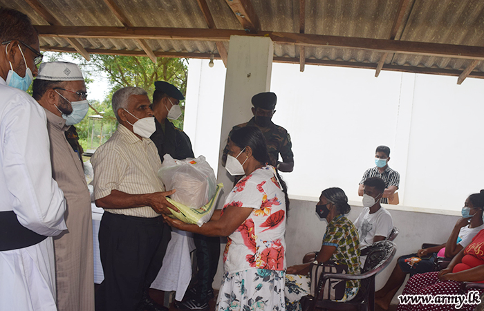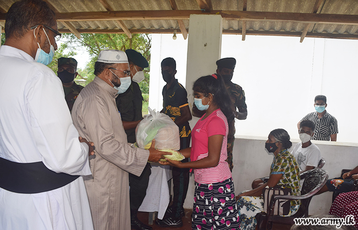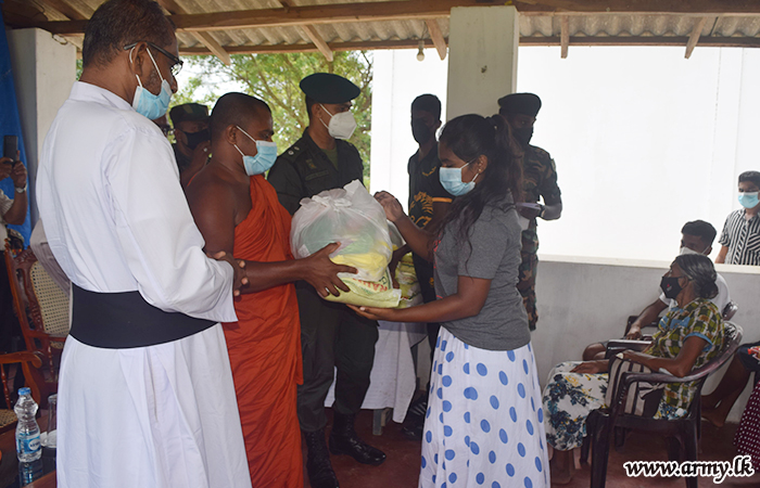 The financial support, extended by Rev Father Jesudasan in Batticaloa, 11 (Volunteer) Sri Lanka Sinha Regiment Officers (SLSR) and 11 SLSR soldiers under the guidance of the Commander 231 Brigade, Brigadier W.M.N.K.D Bandara enabled troops to distribute dry ration packs, each worth about Rs 4000/= among 30 needy families in Keviliyamadu area on 28 November 2021.