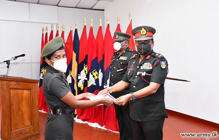 Staff Sergeant R.L.C.W Surendra of 4 Sri Lanka Electrical and Mechanical Engineers Regiment was awarded the Best Student in the Regimental Quartermaster Course No - 68 while the Sapper D.M.M.P Sampath of 5 Corps of Engineer Service Regiment was selected as the Best Student of the Storemen/Ammo Storemen Course No - 50.