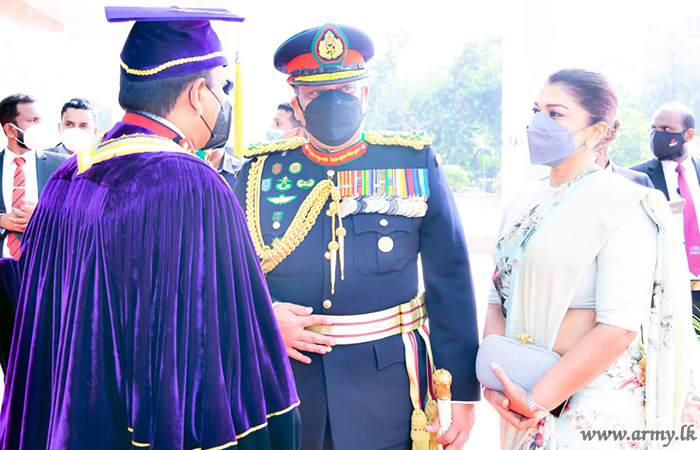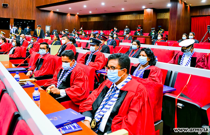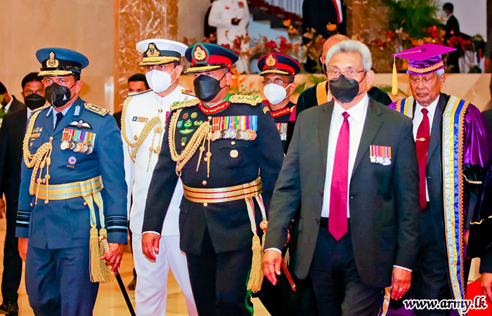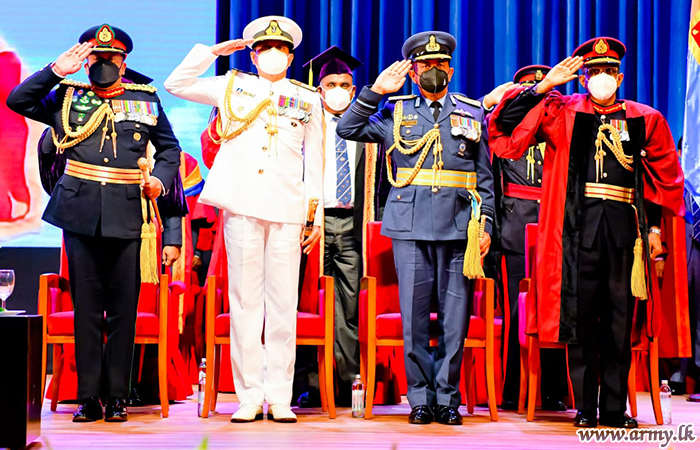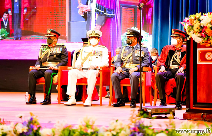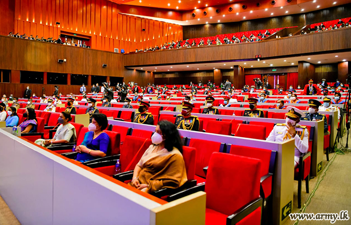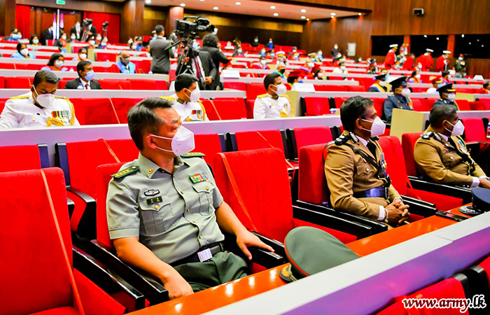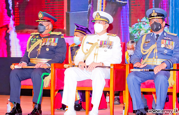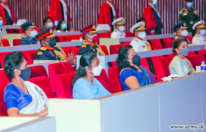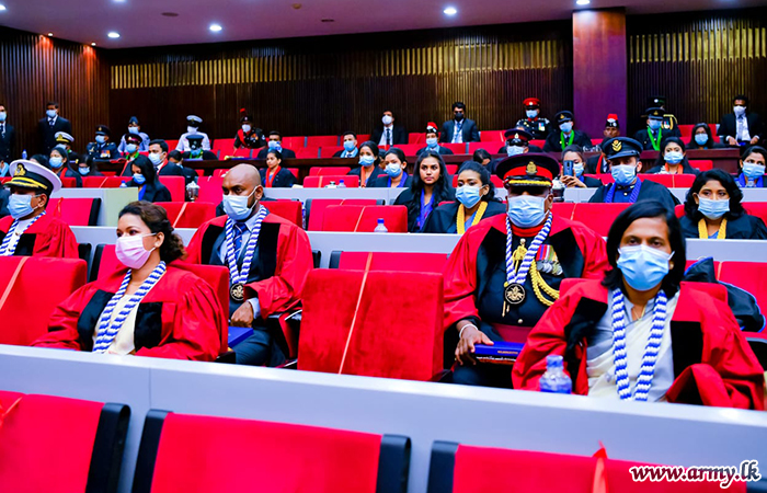 Minister Keheliya Rambukwella, Ambassadors and High Commissioners, Defence Secretary and Secretaries of other ministries, Chief of Defence Staff and Commanders of the Army, General Shavendra Silva, Navy and Air Force Commanders, the Inspector General of Police, Director-General of the Civil Defence Force and other Heads of the Security Sector, Chancellor of General Sir John Kotelawala Defence University General Gerard de Silva, Vice Chancellor Major General Milinda Peiris, Mrs Sujeewa Nelson, President, Army Seva Vanitha Unit and the members of the academic and non-academic staff were also present.