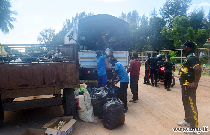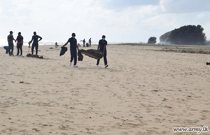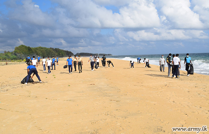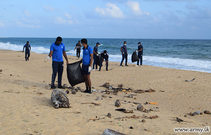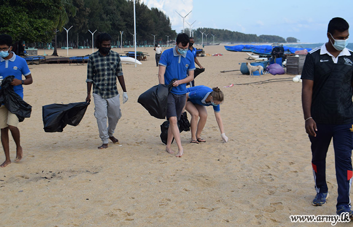 Troops of the 231 Brigade of the 23 Division under the Security Force Headquarters - East in collaboration with the National Programme Director of the CERI organization carried out a beach cleaning programme from Kallady to Kattankudy covering about 4 km in length on Saturday (11).