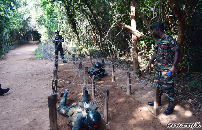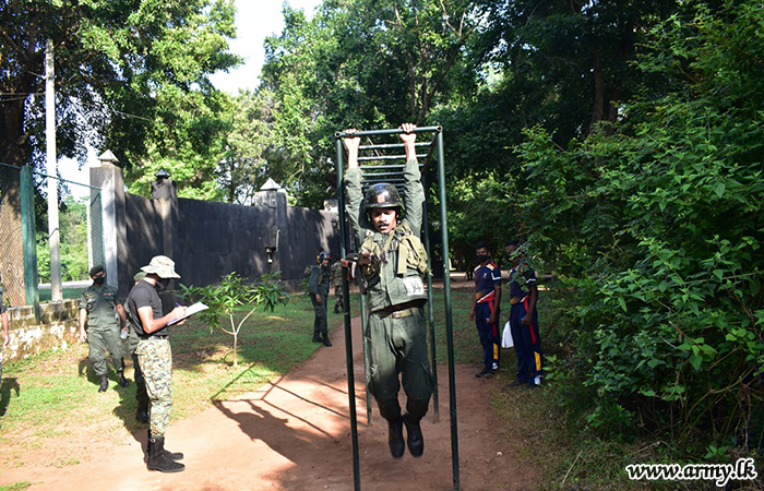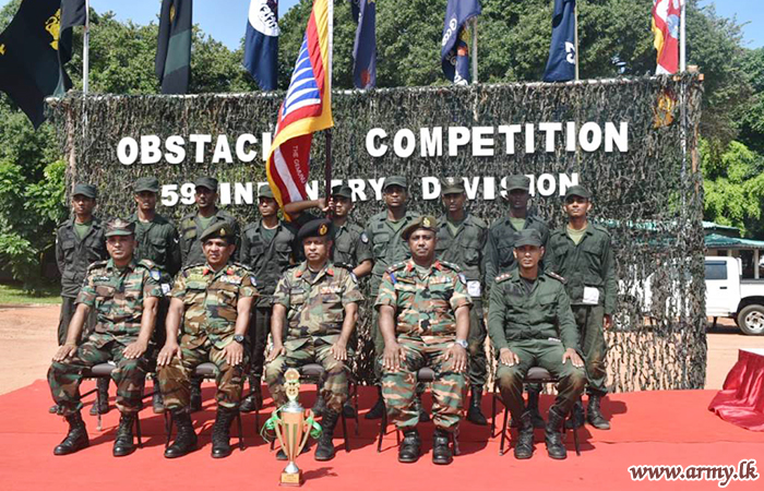 To coincide with the 14th anniversary of the 59 Division under the Security Force HQ - Mullaittivu (SFHQ-MLT), 19 Gemunu Watch (GW) and 5 (V) Sri Lanka Sinha Regiment (SLSR) troops organized an obstacle crossing competition at the 2 Special Forces HQ on Monday (6).
