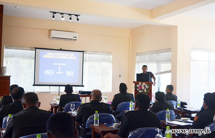 The proceedings of the first day included a wide array of subjects, namely: Legal responsibilities of a Commanding Officer, (Lecture by Major N.R.M.R.A Giragama from Directorate of Legal and a lecture conducted by Mr Isuru Achintha Ekanayaka, Senior Lecturer at Sabaragamuwa University of Sri Lanka, covering few areas of management; management concepts and best practices, communication in organization and critical thinking.