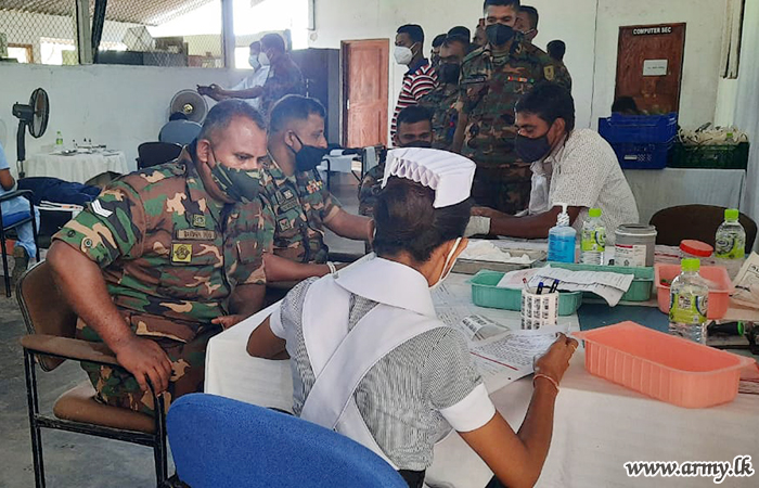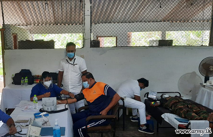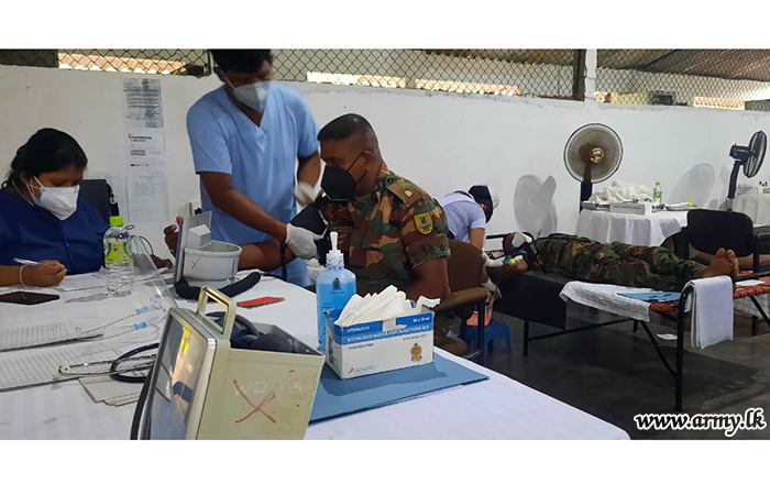 At the request of Pottuvil-base Hospital, 5 Officers and 74 soldiers of the 242 Brigade Headquarters of the 24 Division under the Security Force Headquarters - East volunteered to give blood to the hospital patients during a programme launched at the 242 Brigade HQ on Sunday (12).